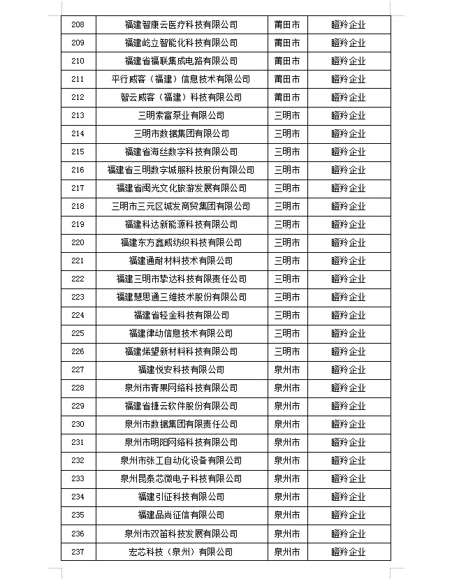 为深入实施做大做强做优数字经济行动计划,加快培育壮大数字经济创新企业,经企业申报、专家核验等程序,省数据管理局初步确定2025年度福建省数字经济核心产业创新企业拟入选名单,现予以公示。