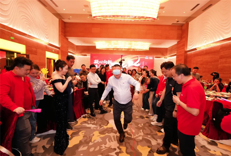 除了精彩纷呈的节目,趣味游戏环节更是将欢乐拉满。《红绿灯》《蒙眼走绳子》等互动游戏趣味十足,台上同事踊跃参与,台下观众欢呼助威,欢声笑语回荡在宴会厅的每个角落,拉近了彼此的距离,凝聚了团队的向心力。